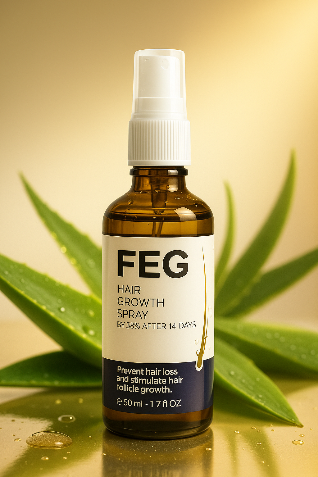 Designed for both men and women, FEG Plus Hair Growth Spray delivers visible results in weeks by nourishing your scalp with FDA-approved, USA-made ingredients that strengthen from the root up.”